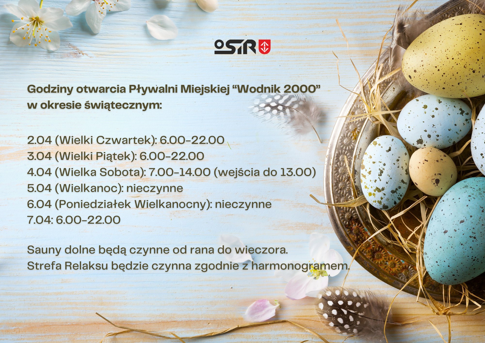 Godziny otwarcia Pływalni Miejskiej podczas świąt Wielkanocnych